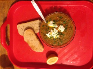 Ciorba de linte verde, facuta in casa. Se serveste cu 1-2 linguri de iaurt, cativa stropi de ulei de masline, putina zeama de lamaie stoarsa si menta proaspata. Sau patrunjel...